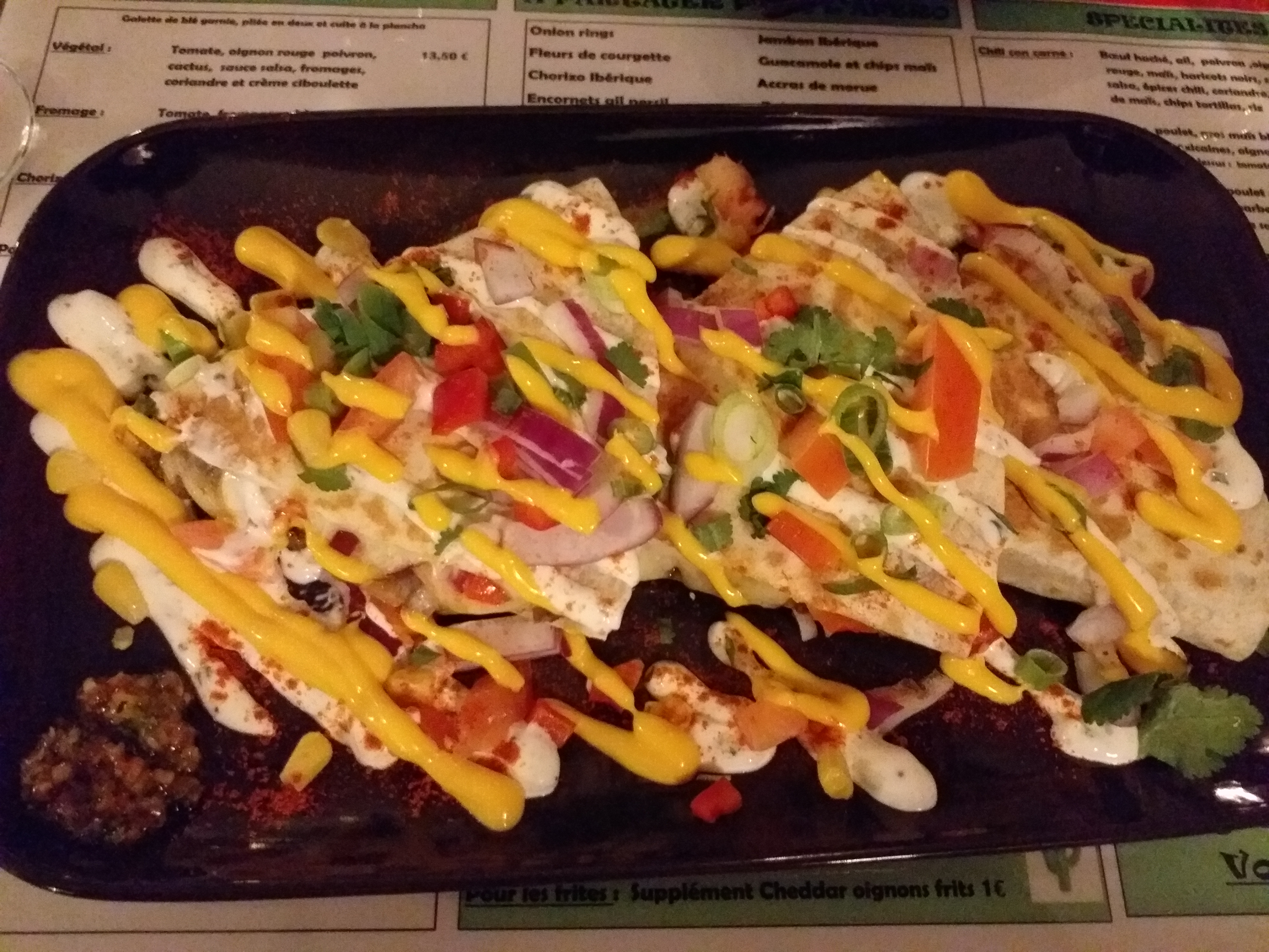 Posté le 14/04/2017 à 14:10"Cadre très sympathique, accueil avec le sourire et les Quesadillas sont excellentes ! Découverte culinaire exceptionnelle (surtout pour le rapport qualité/prix !)"