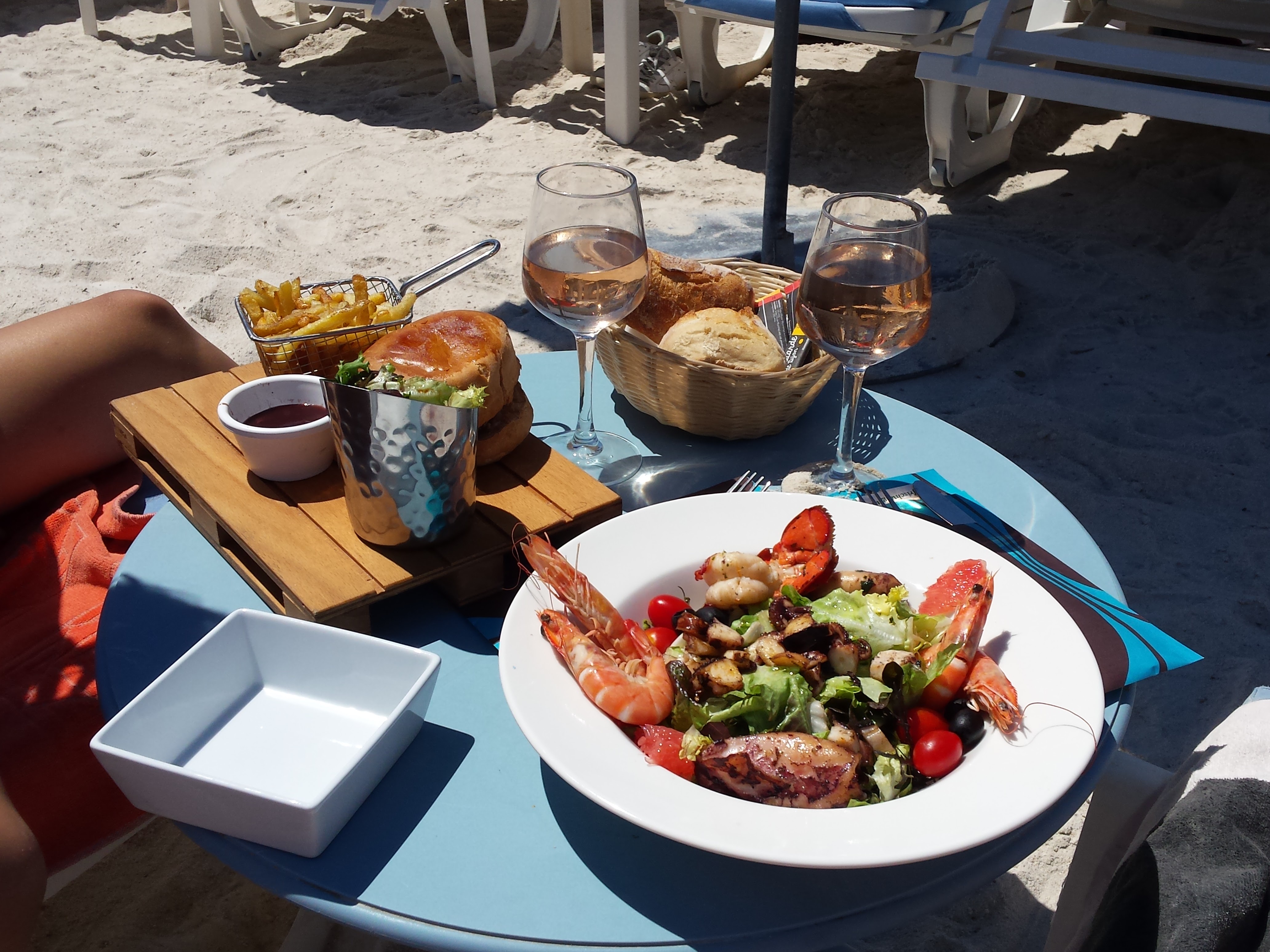 Une formule plage à 35 euros, avec un « vrai transat » , une salade délicieuse servi dans une galette de blé à la mexicaine, une boisson incluse et le personnel au petit soin. Je recommande vivement, c’était un réel moment de détente … A réitéré durant l’été.