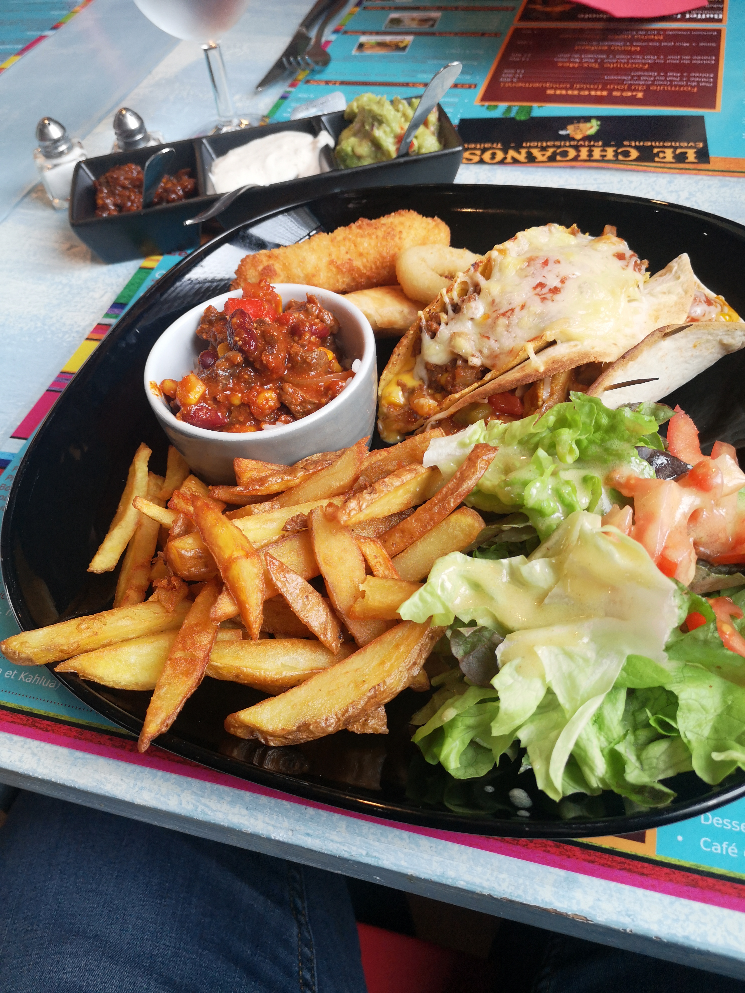 Posté le 03/10/2018 à 18:27"L'endroit est sympa et agréable. Les fajitas mériteraient un accompagnement avec du riz plutôt que des frites pour plus d'authenticité :) mais la gérante souriante et attentive."