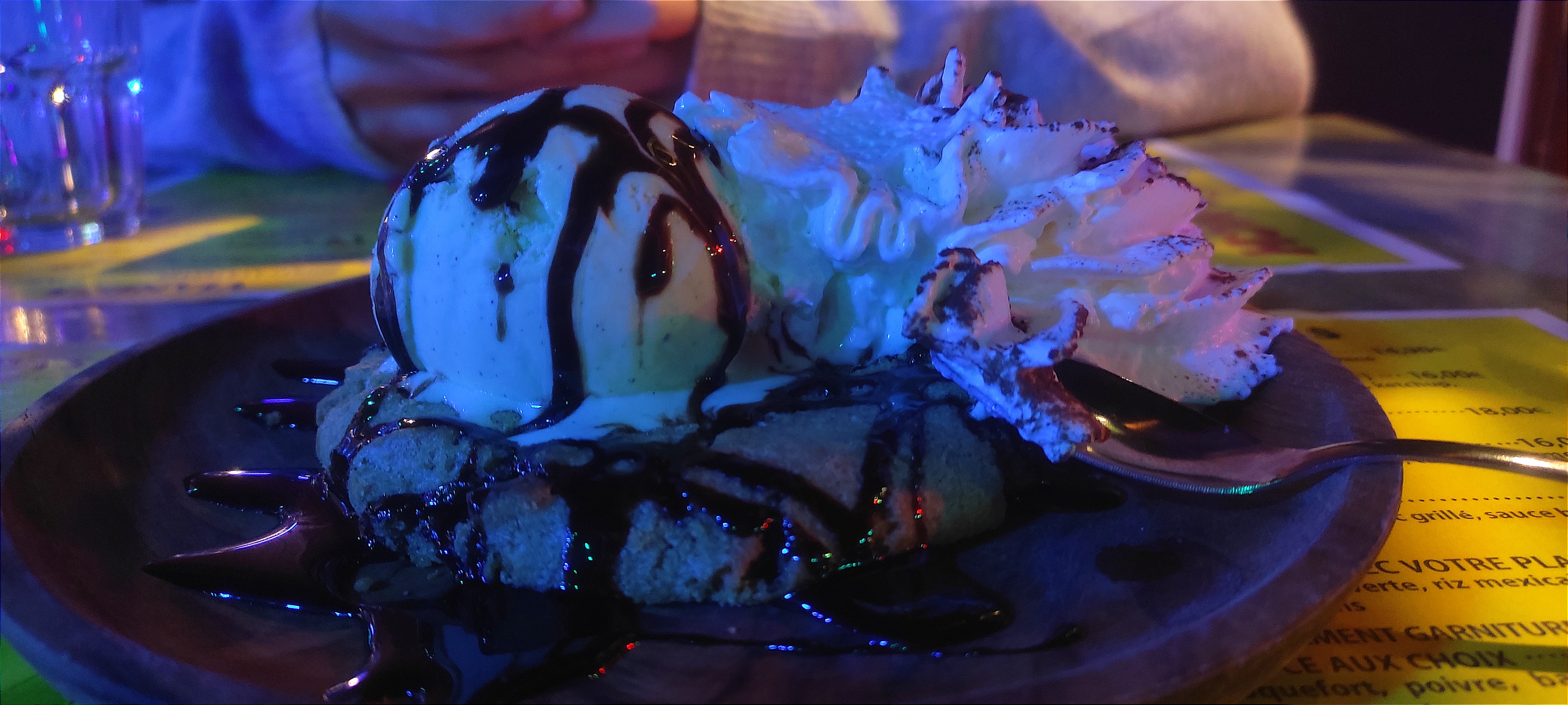 Correct mais pas remarquable. Nous avons pris le classique « fajitas mixte » que ce genre de restaurant doit servir. Ni bon ni mauvais viande coupée en cube et pas émincée trois bouts de poivron et d’oignons sans épices mexicaine donc pas goûteux. Les plaques de fonte n’étaient pas chaudes. D’où le ni bon ni mauvais. Service bien et rapide Musique entêtante pas vraiment en phase avec l’ambiance tex-mex. son de mauvaise qualité craché pas une pauvre enceinte perdue au fond du jardin